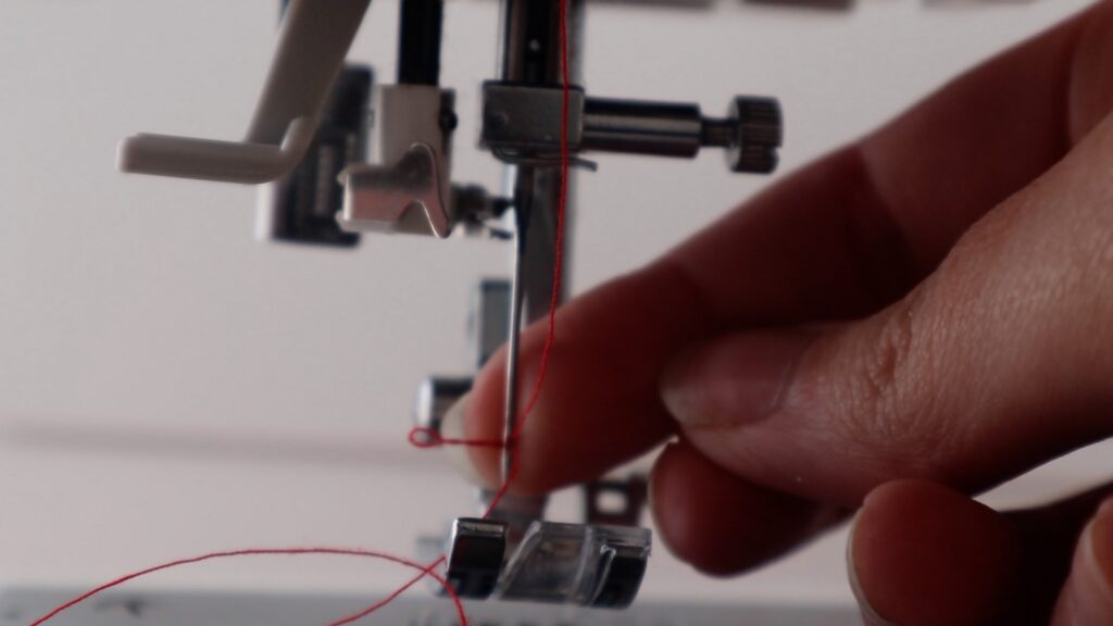 Bringing the thread back down from step 5, now the thread should be in front of your needle.