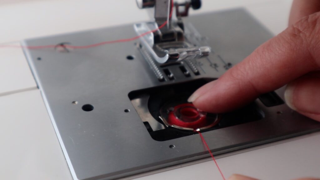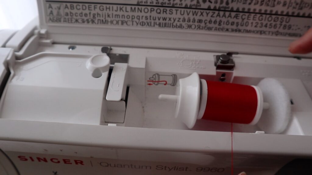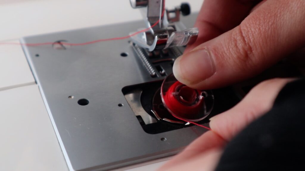 Placing the bobbin in your machine, you’re going to ensure the thread is going counter clockwise.